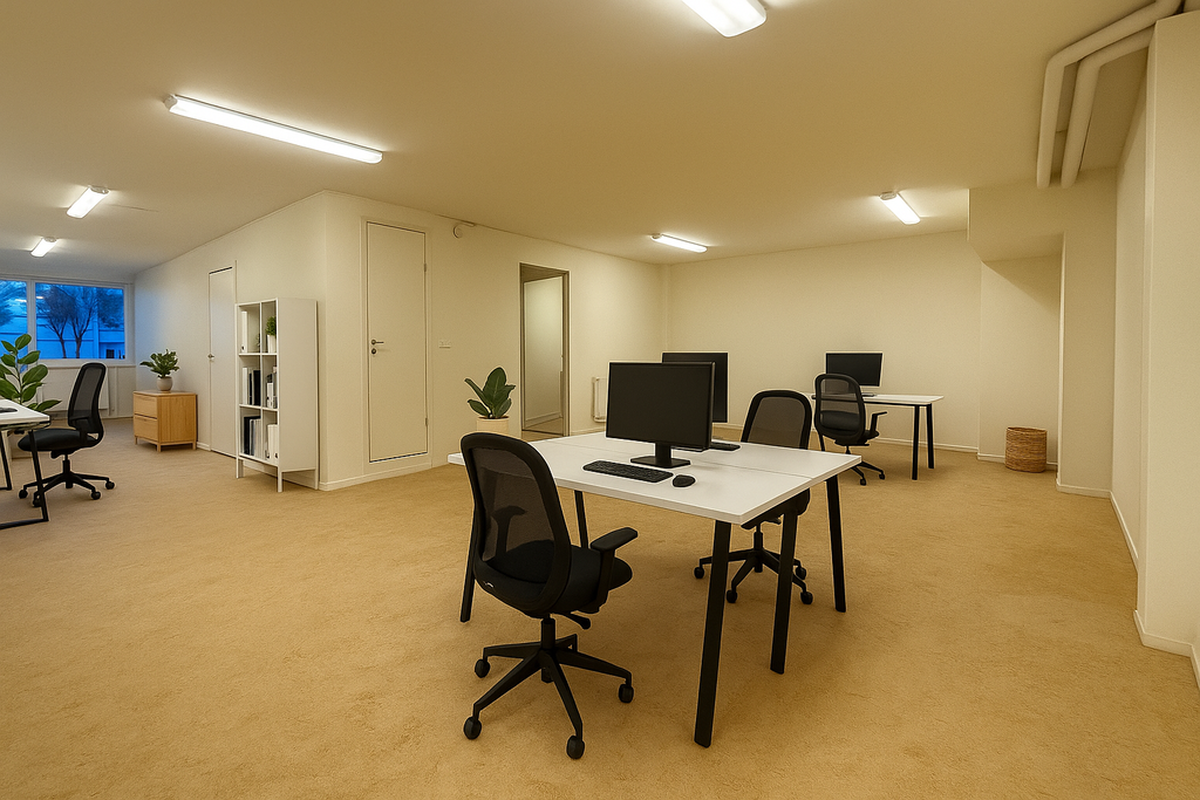 Den öppna huvudytan erbjuder generöst med utrymme för arbetsplatser, träningsyta, studio eller salong. Flexibel planlösning där du enkelt kan möblera efter verksamhetens behov. Ny elinstallation med 3-fas, modern belysning och enhetliga ytskikt genom hela lokalen. Perfekt för företag som kräver stora sammanhängande ytor.
