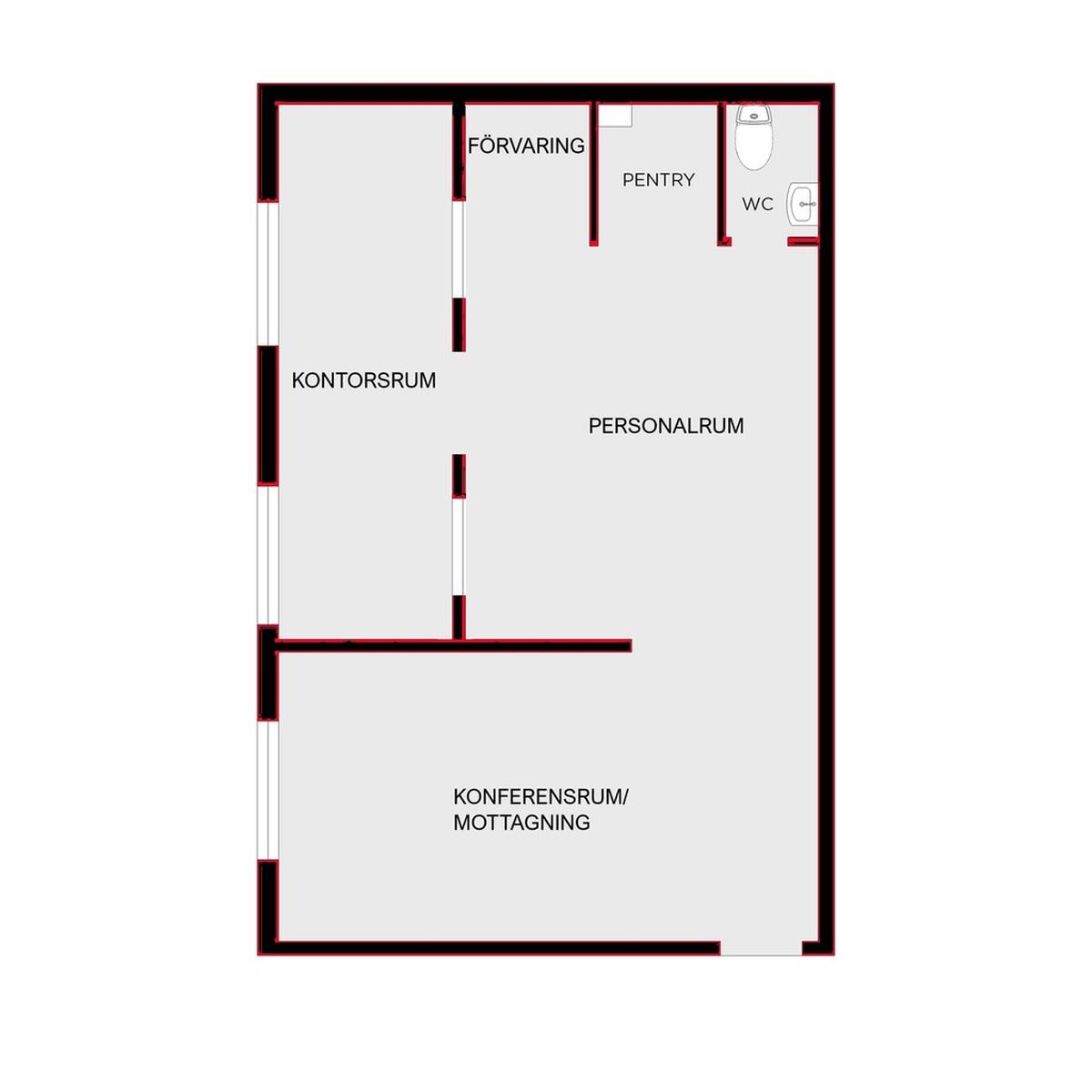 Här finns tilluftsventilation som ger ett bra inomhusklimat, samt både wc och pentry placerade längst in i lokalen. Fiber är installerat och ger snabba och stabila uppkopplingsmöjligheter.