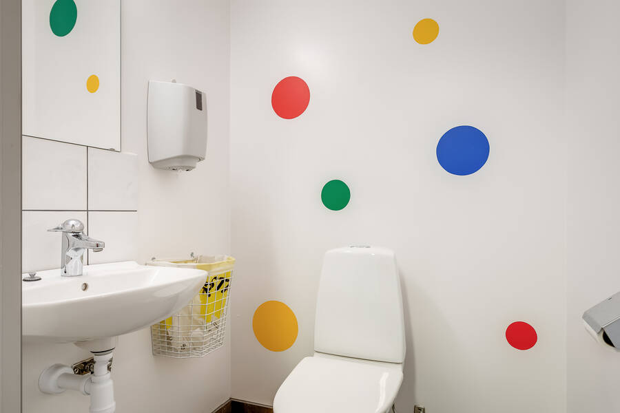 Toalett: I fastigheten finns totalt 5 st wc (varav 2 st i omklädningsrummen) varav en är handikappanpassad.