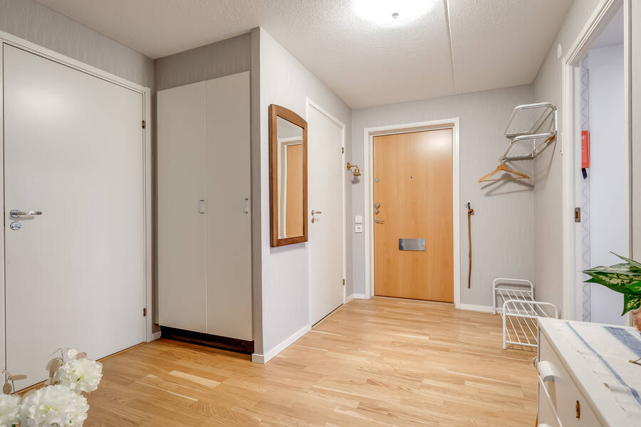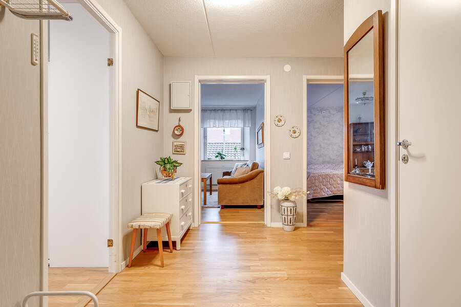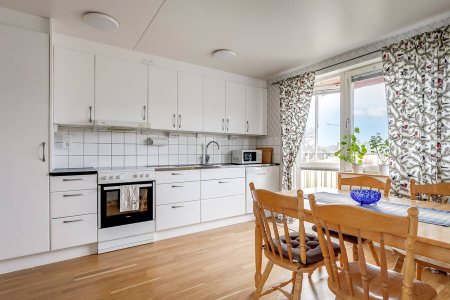 Det generösa ljusinsläppet, särskilt i allrummet med fönster i två väderstreck, skapar en trivsam och luftig känsla genom hela hemmet. Köket är renoverat 2021 och har utgång till den mysiga balkongen där du kan njuta av eftermiddags- och kvällssolen. Sovrummet ligger rofyllt mot gården och det finns gott om förvaring i både garderober och den rymliga klädkammaren.