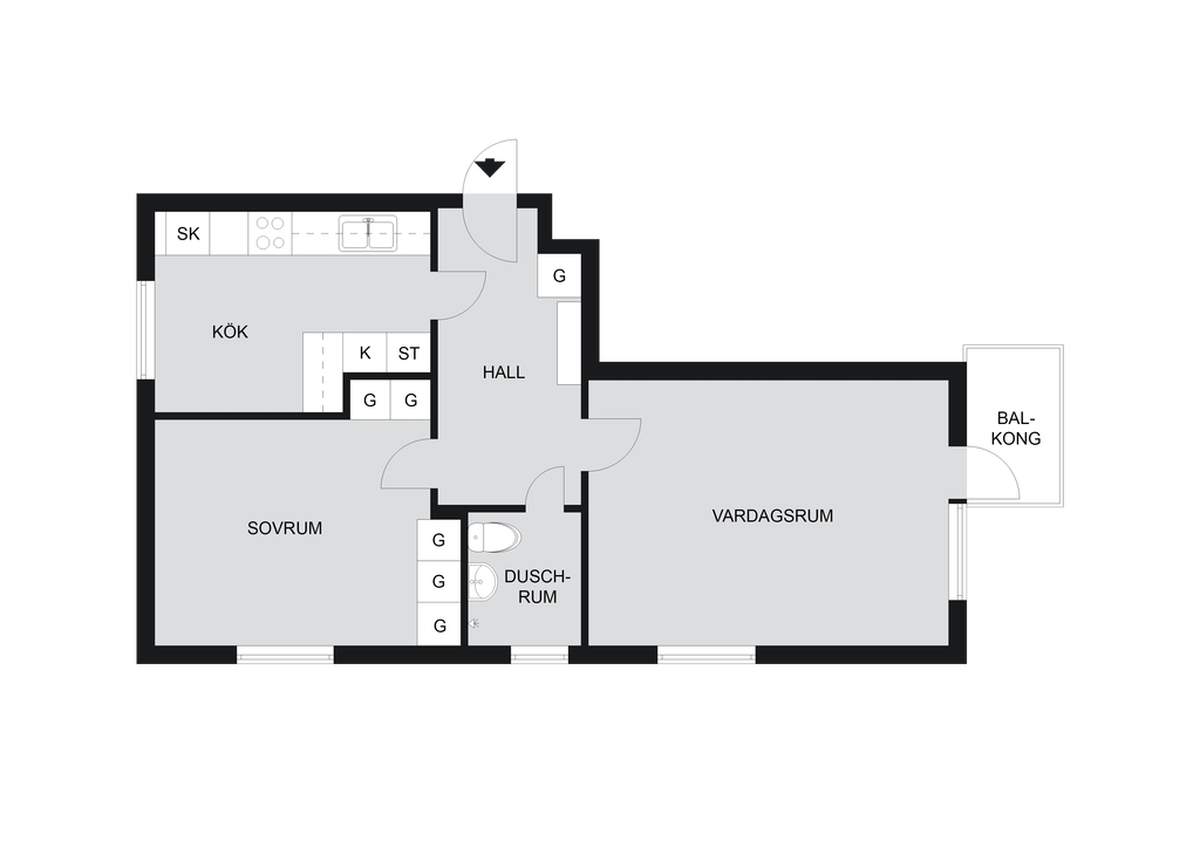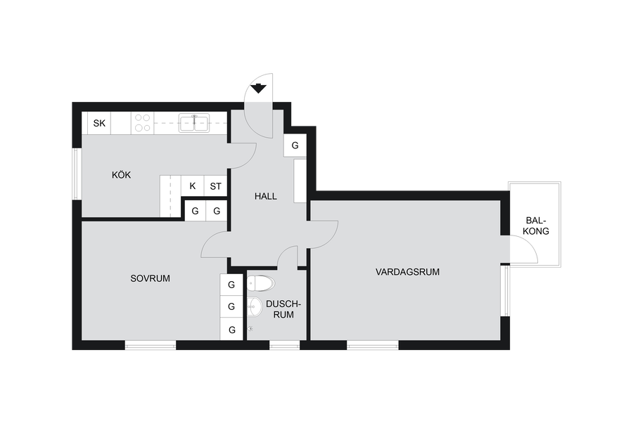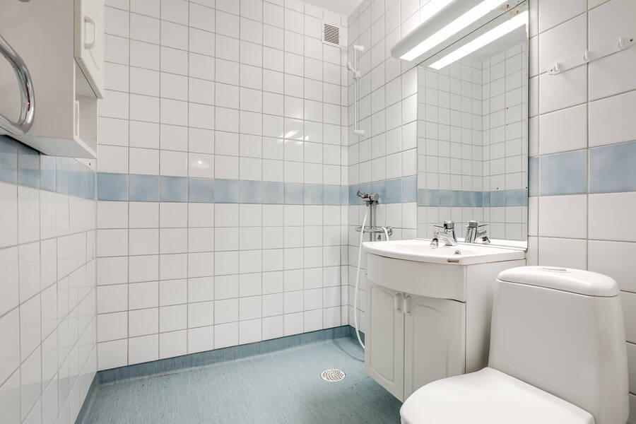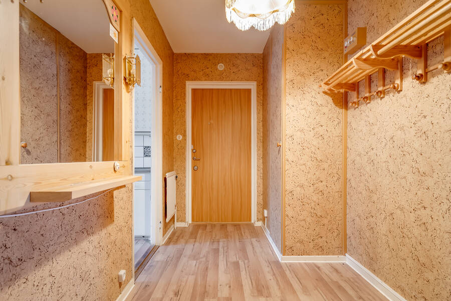 I hallen finns goda förvaringsmöjligheter som ger ett praktiskt och välorganiserat första intryck. Vidare öppnar sig ett vardagsrum med fint ljusinsläpp och utgång till en balkong i härligt sydvästläge, en idealisk plats för avkoppling. Köket har plats för matbord och erbjuder bra arbetsytor för den som tycker om matlagning. Sovrummet är rogivande och utrustat med inbyggda garderober som underlättar ordning och struktur. Duschrummet har kaklade väggar och ger en bra grund för vidare modernisering.