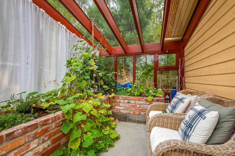 Vidbyggt ned relaxhuset finns orangeriet där man kan odla och samtidigt sitta i en fin miljö o koppla av med en bra bok.