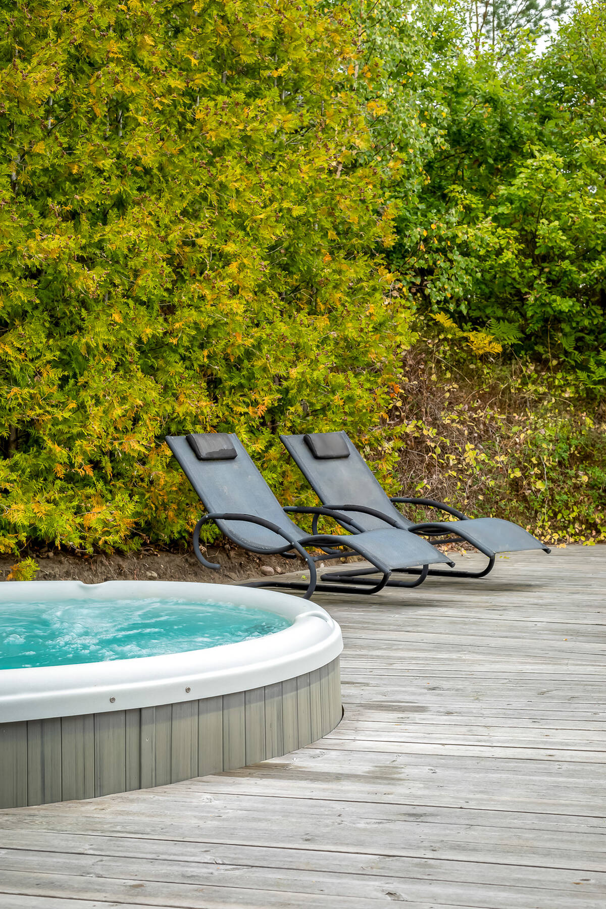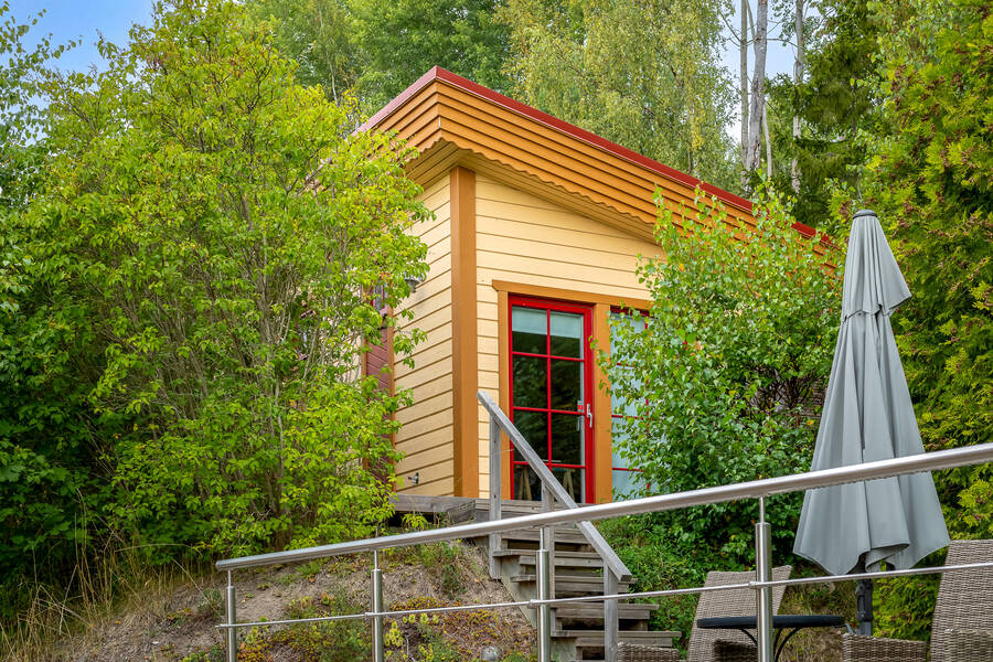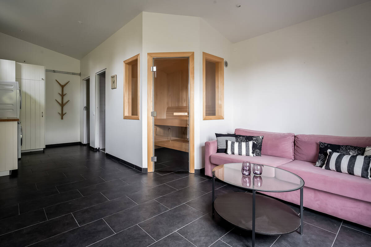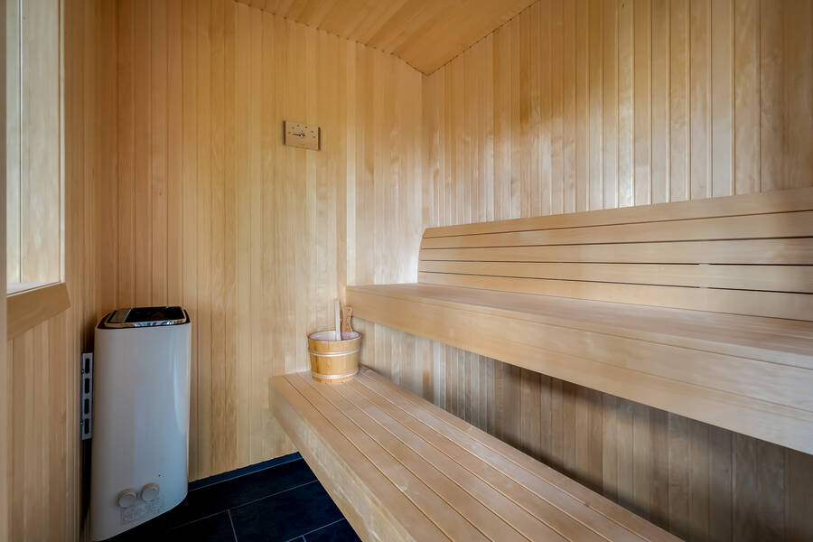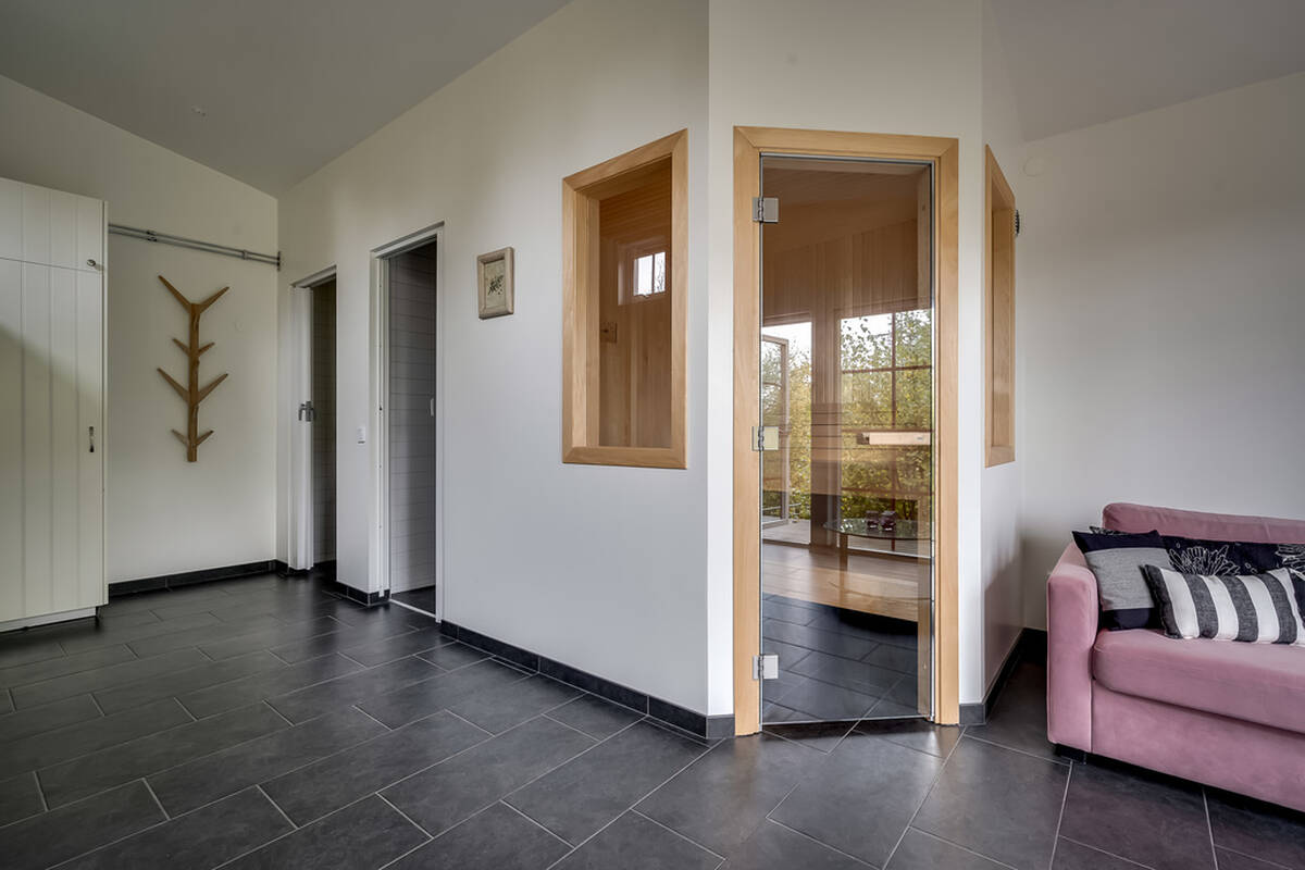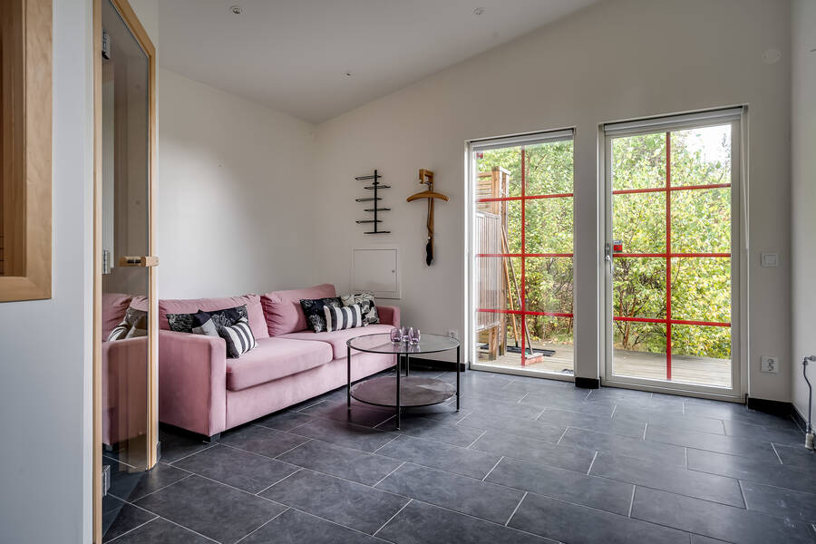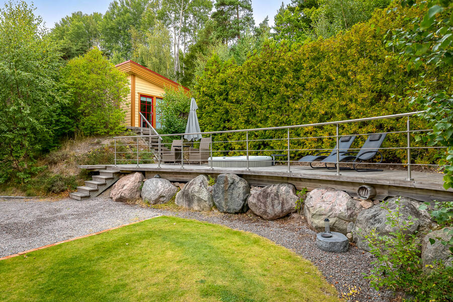 En separat byggnad med relaxavdelning, idealisk för avkoppling året runt.