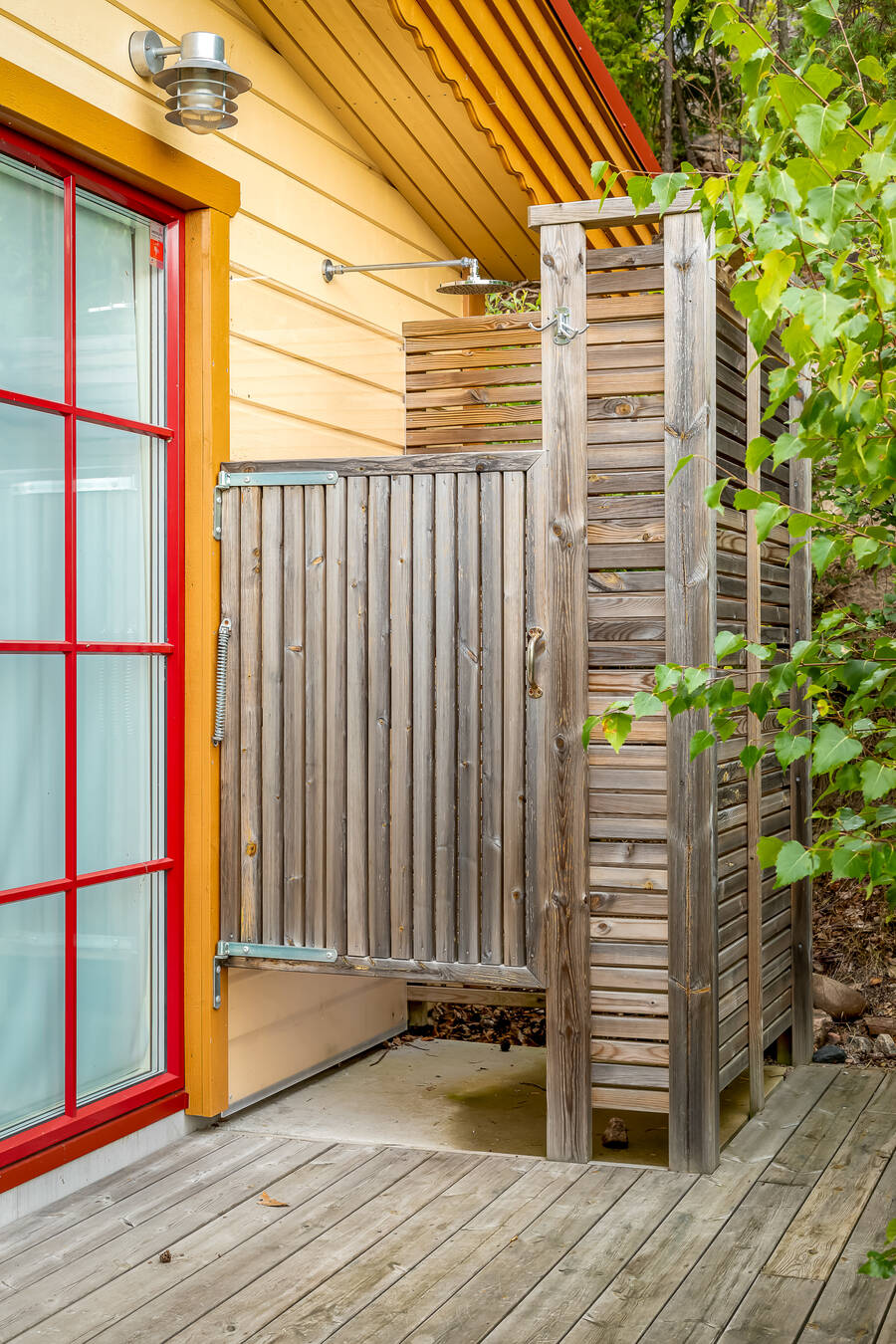 En egen sjöbod med badbrygga, där sommarens bad och vinterutflykter får sin självklara utgångspunkt.