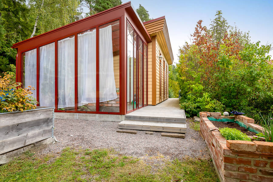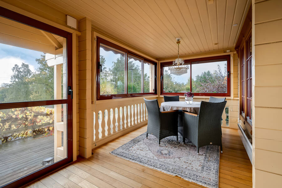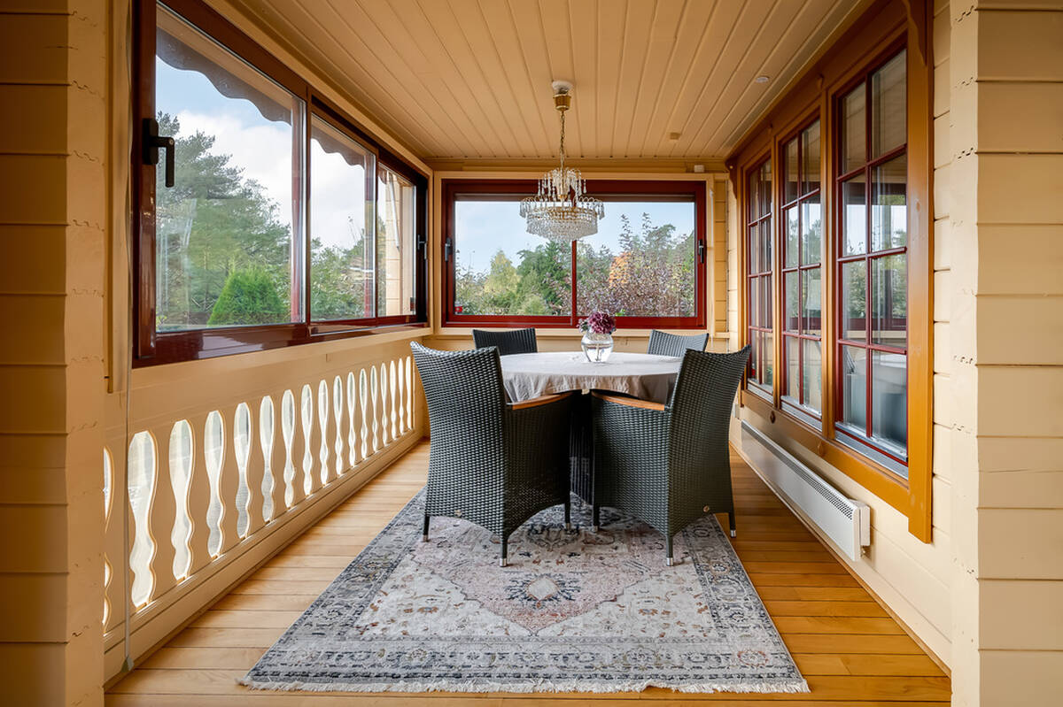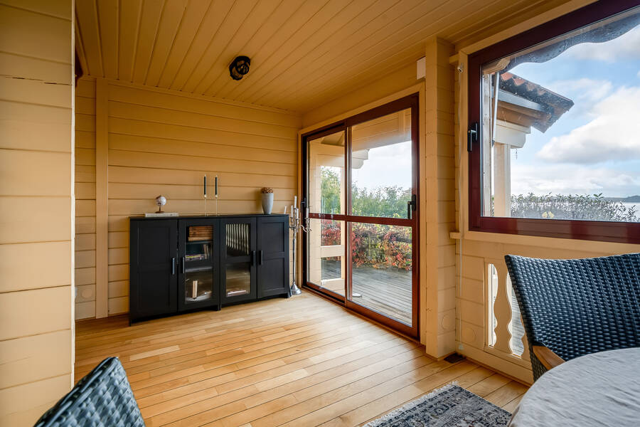 Inglasar uterum med fin utsikt över Bråviken. Rummet går att nyttja året/runt