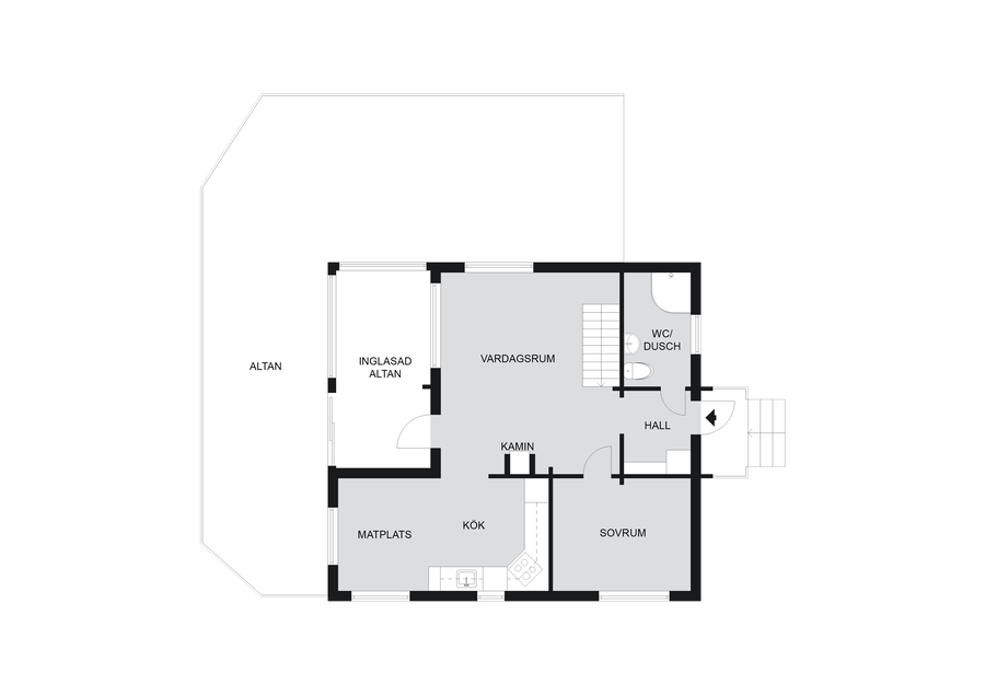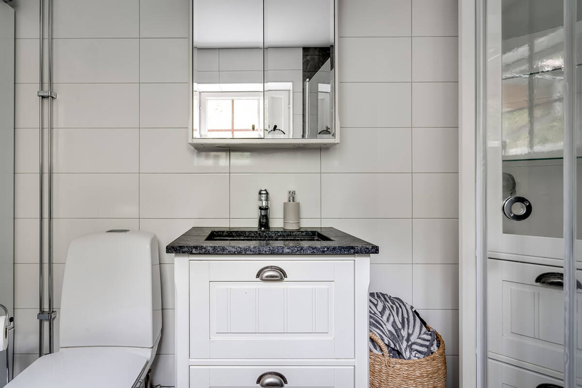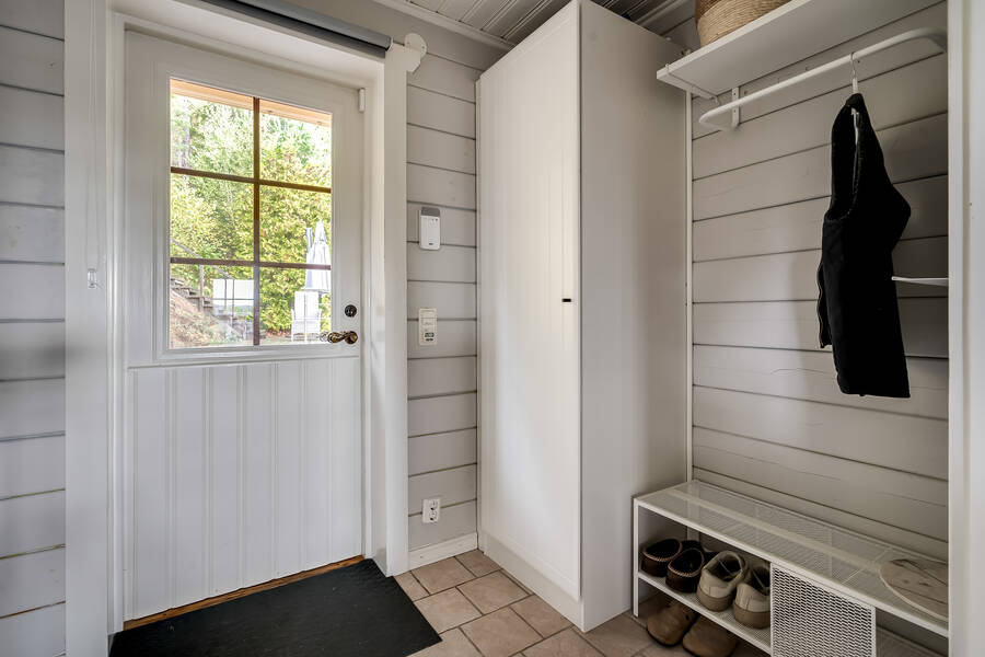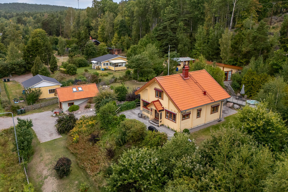 Huvudbyggnaden fördelar sig på 1 ½ plan. På entréplanet möts du av ett helt nytt kök -24 i öppen planlösning mot vardagsrum med eldstad och utgång till både altandäck och det fantastiska inglasade uterummet. Här finns även ett ljust sovrum samt ett helkaklat duschrum som nyligen renoverats. Övre planet rymmer ett stort allrum med ryggåstak och härligt ljusinsläpp, samt ett sovrum med vidsträckt utsikt över Bråviken. Gott om förvaring och möjlighet till braskamin där befintlig murstock kan nyttjas.