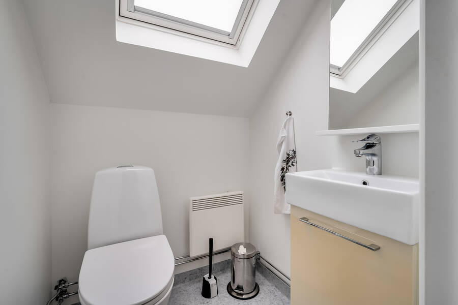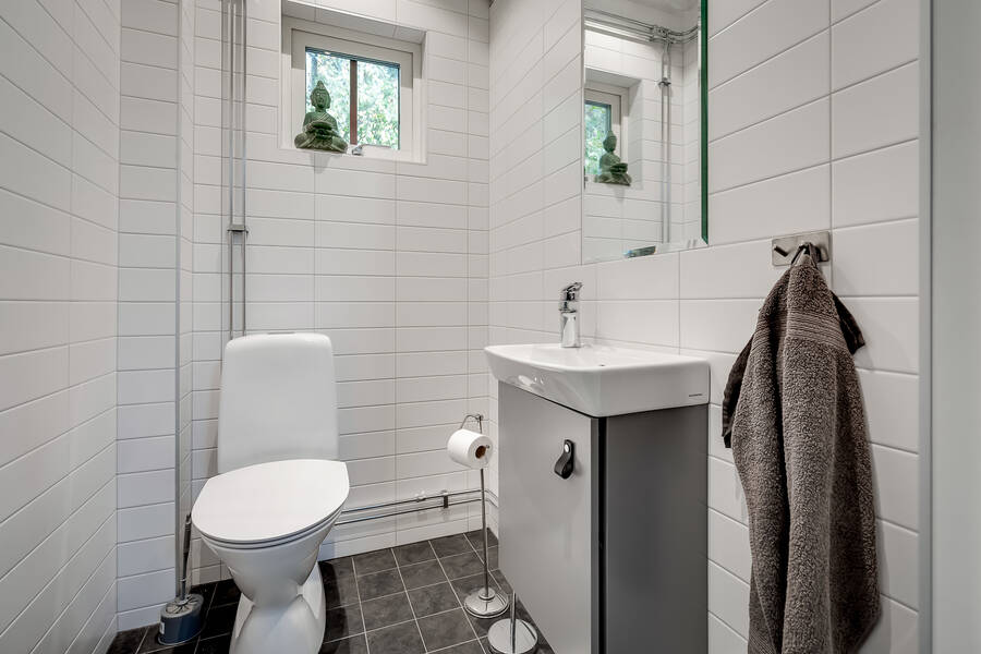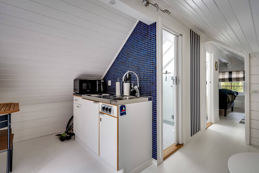 På garaget har man inrett en lägenhet som består av ett kombinerat sovrum/vardagsrum med fin utsikt över Bråviken. Här finns även ett trinettkök, duschrum med plats för tvättmaskin och torktumlare. WC med handfat. Perfekt utrymme för t ex uthyrning som ger bra extra inkomst, eller eget boende till tonåringen.