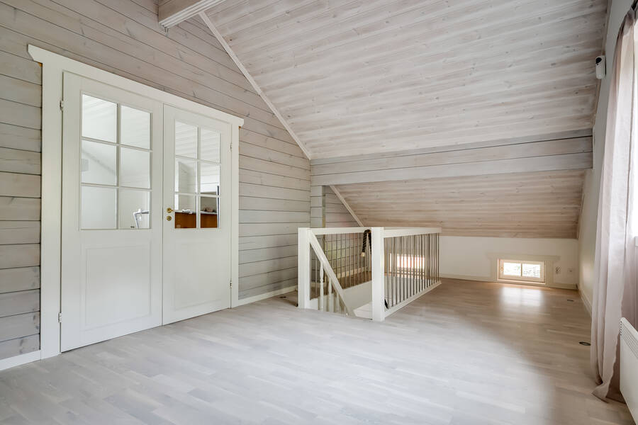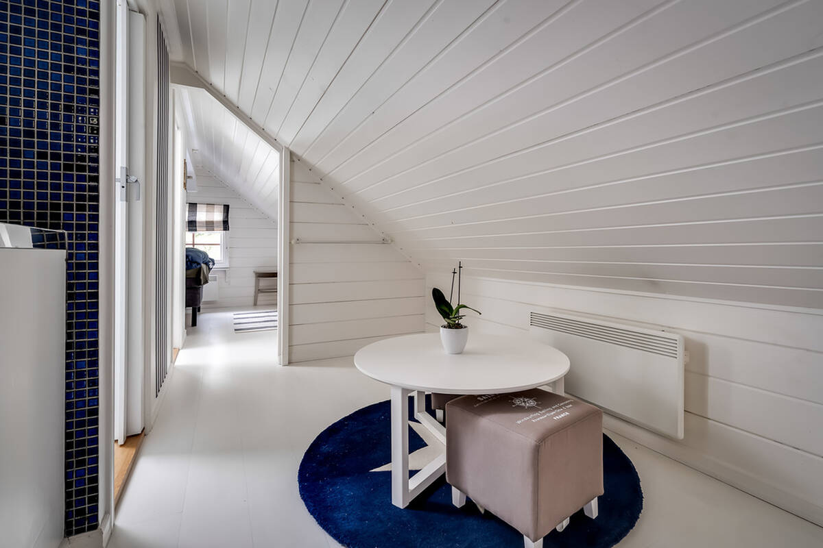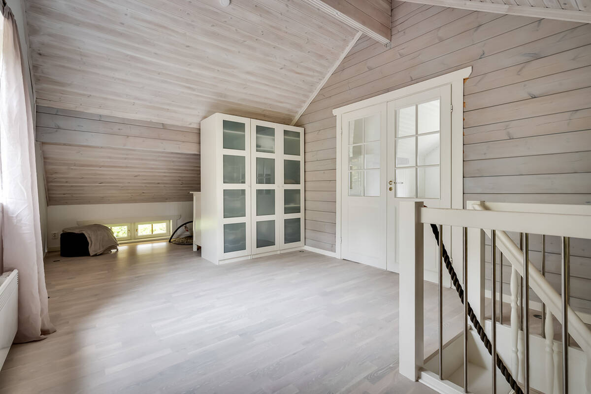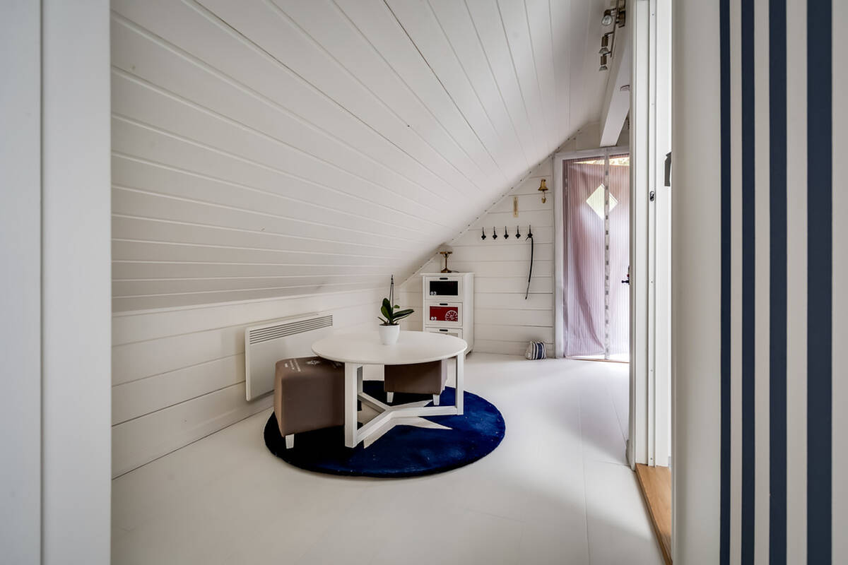 Rymlig övre hall som går att använda för extra förvaring eller inreda till t ex ett hemmakontor.