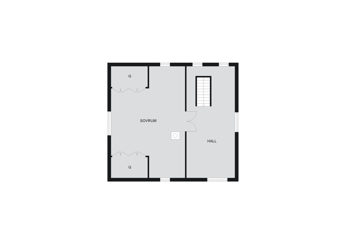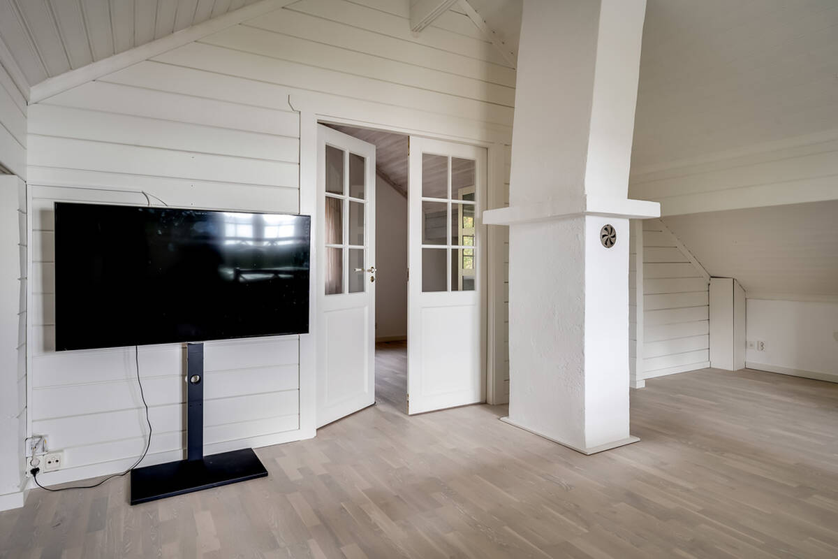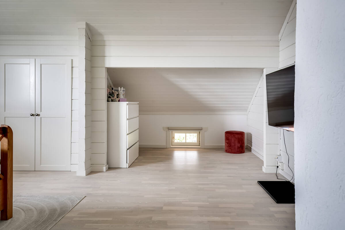 Rymlig övre hall som går att använda för extra förvaring eller inreda till t ex ett hemmakontor.