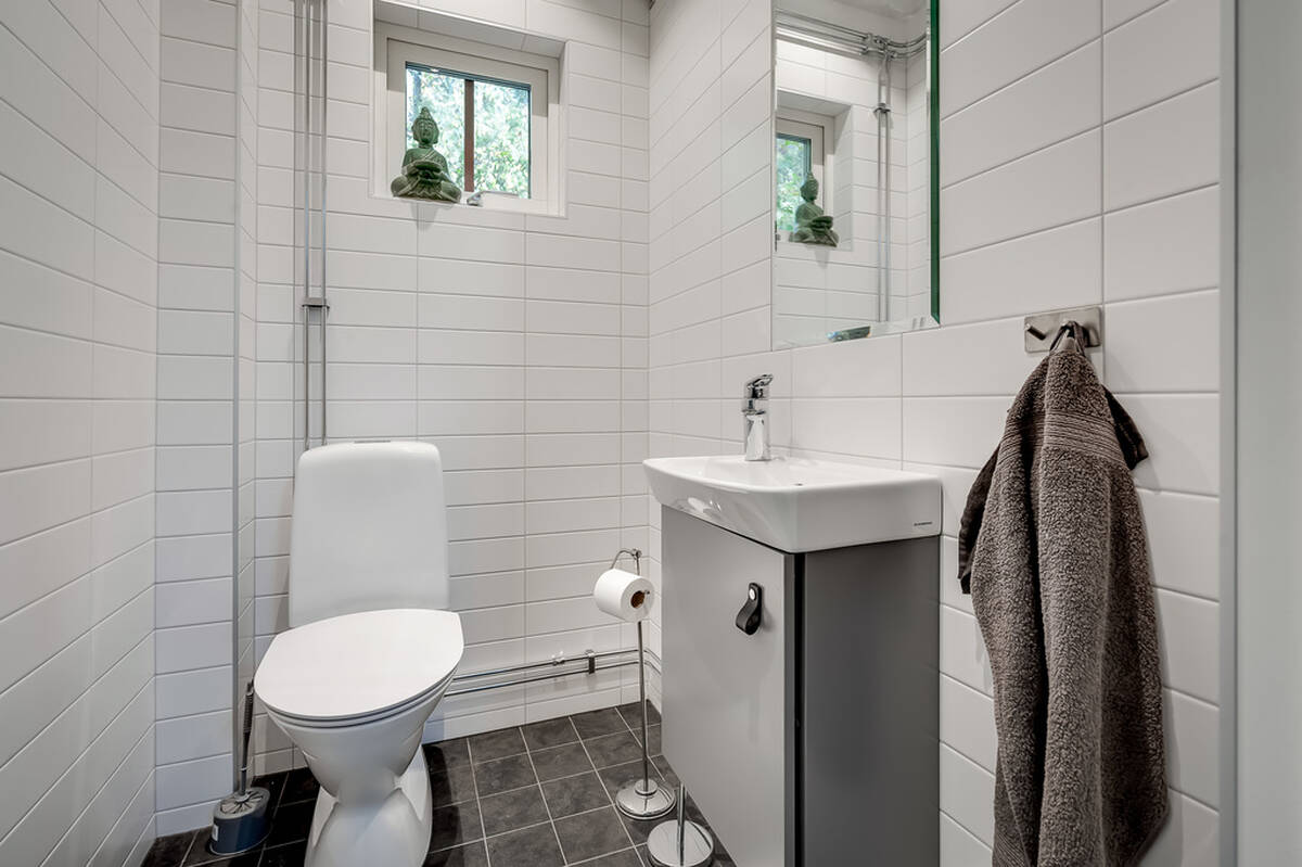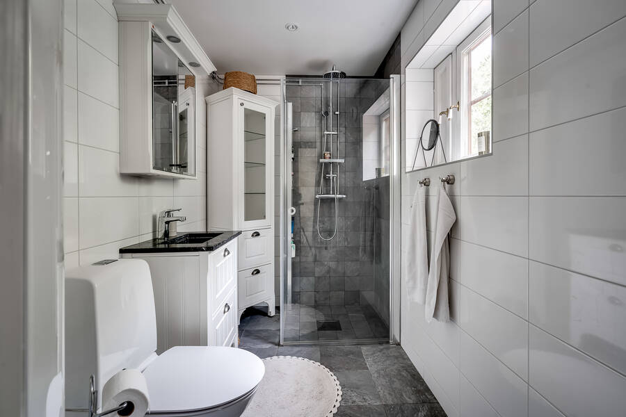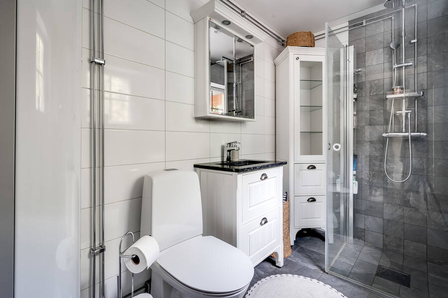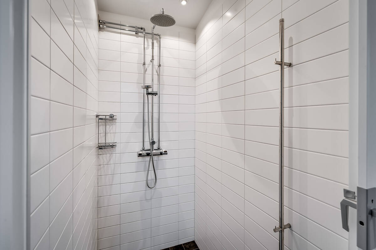 Helkaklat duschrum med klinker och golvvärme. Renoverades 2020.