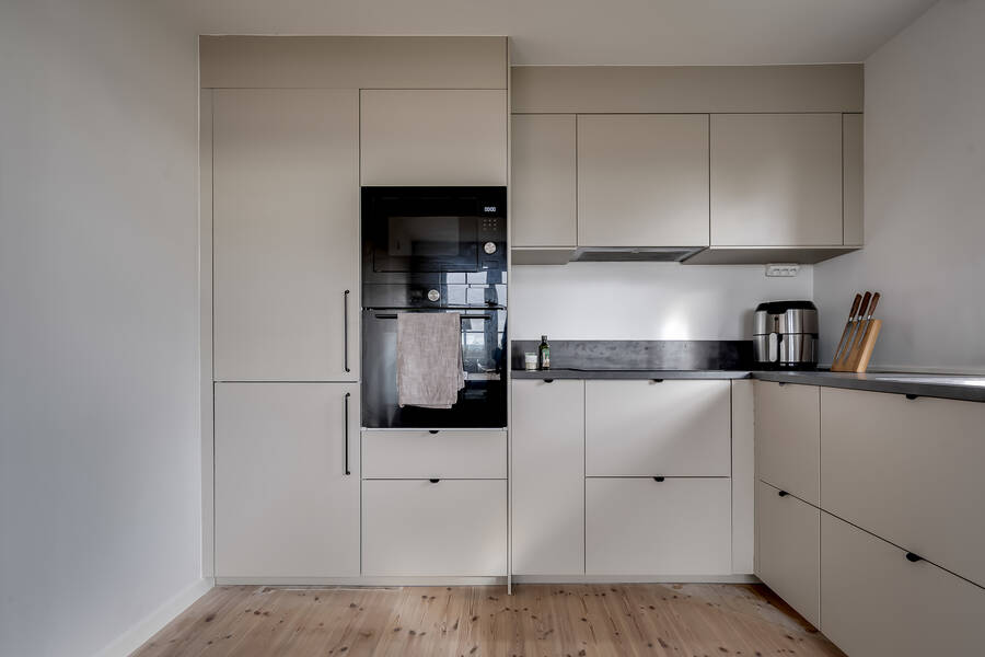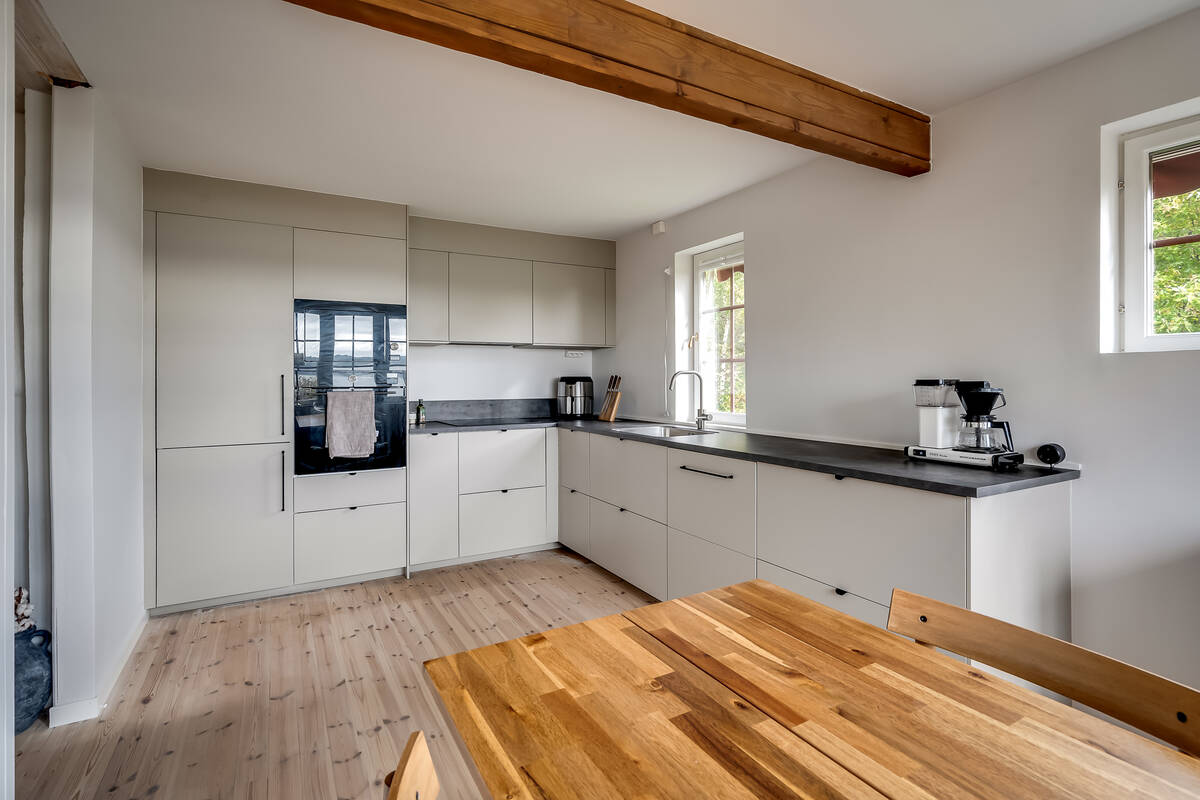 Helt nytt kök 2024 inkl nya vitvaror med inbyggd ugn och micro, induktionshäll, integrerad diskmaskin, integrerad kyl och frys.