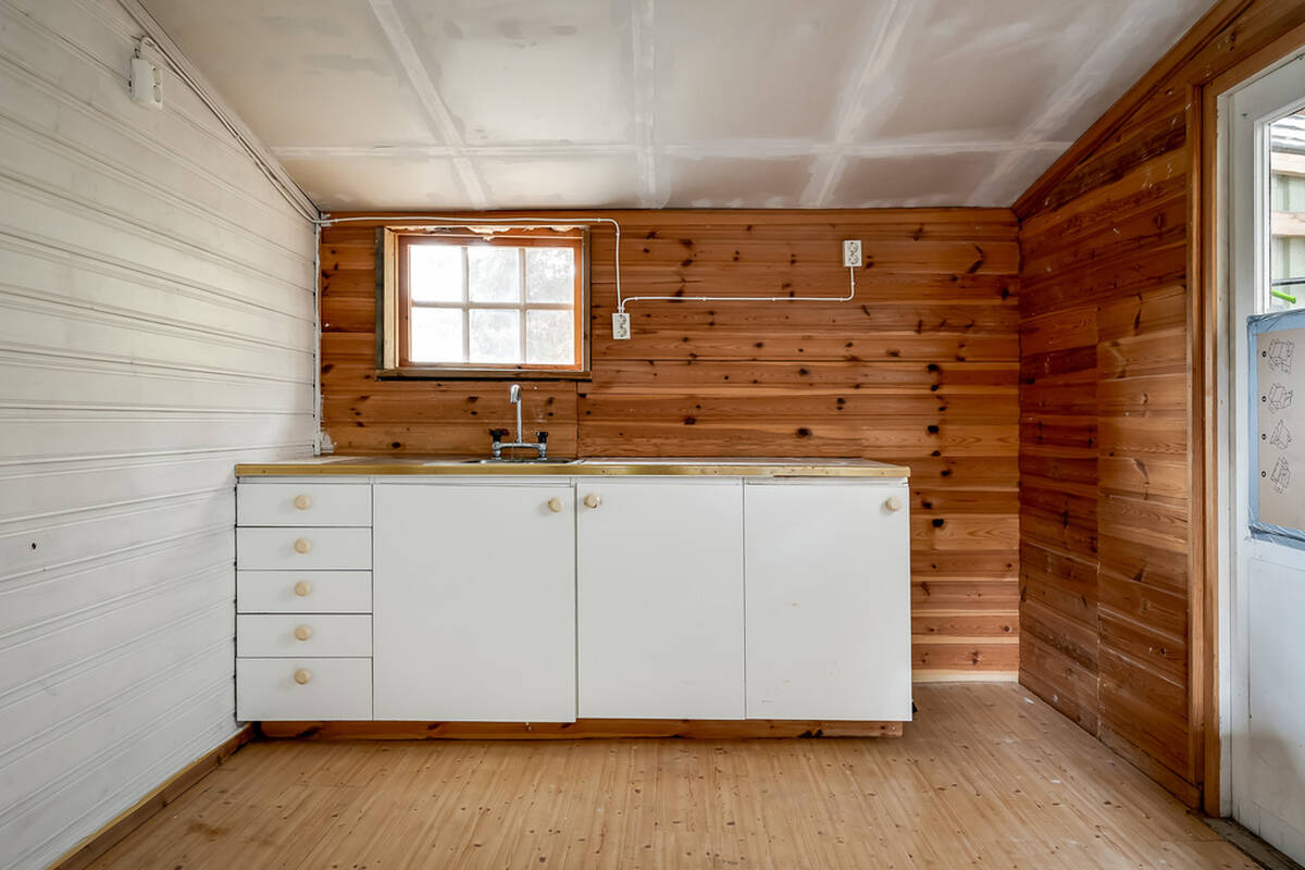 Detta är fastighetens ursprungliga bostadshus och är därmed en äldre byggnad. Boarea 36 kvm . Vissa delar har renoverats som te x sovrum. Man har även installerat en köksbänk, där ett kök är tänkt att kunna placeras. Här finns även ett vardagsrum i form av en inglasad veranda.