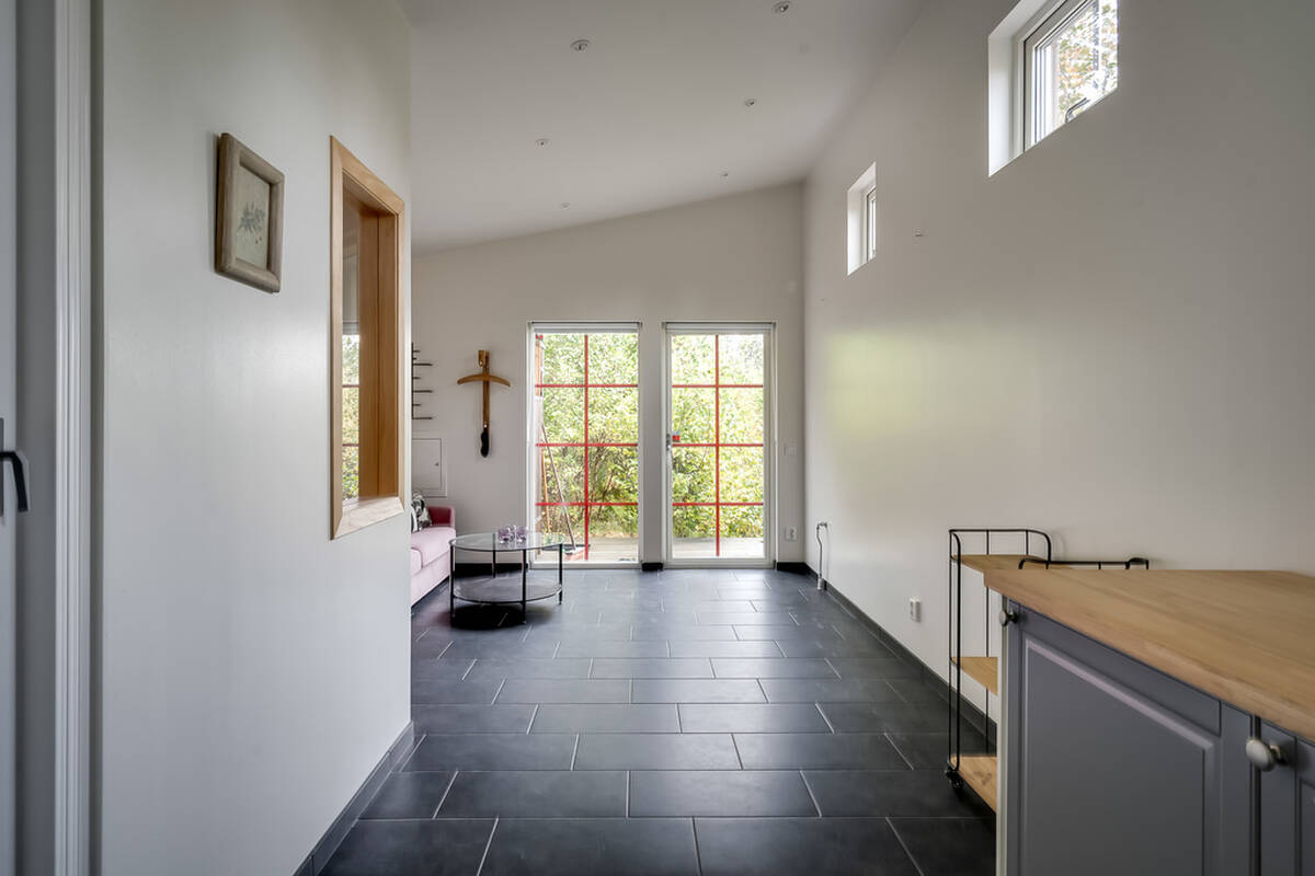 Ett garage med inredd lägenhet på ovanvåningen – perfekt som tonårsbostad, gästrum eller för uthyrning.