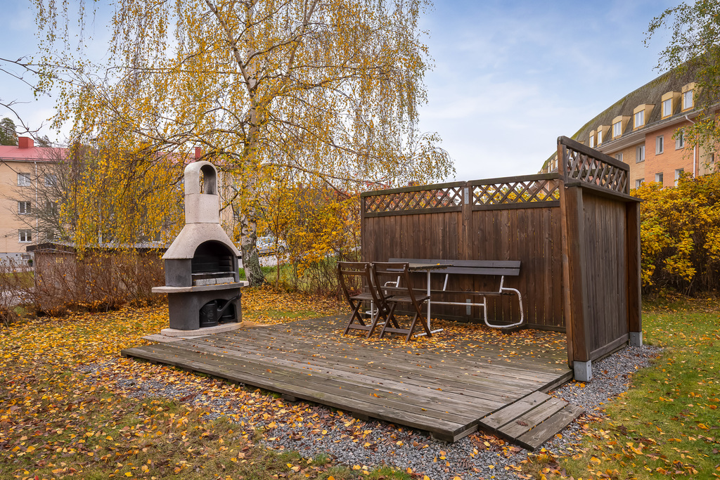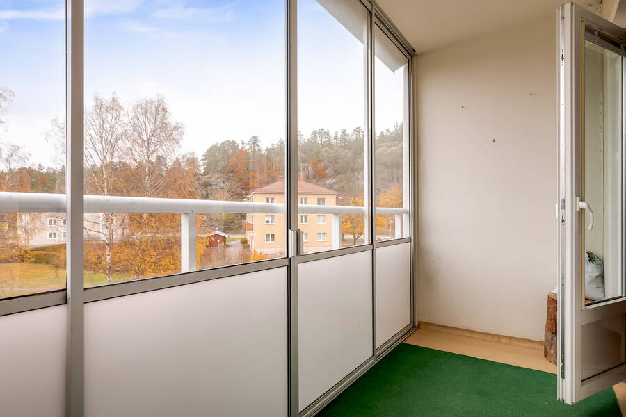 Den något långsmala balkongen med härlig kvällssol och infravärme förlänger säsongen långt in på hösten. Den erbjuder även möjlighet att tidigt på året njuta av vårens första solstrålar. En perfekt plats för avkoppling efter dagens slut, med utsikt och trivsam atmosfär.