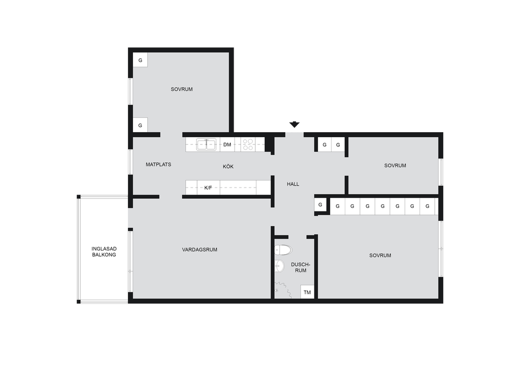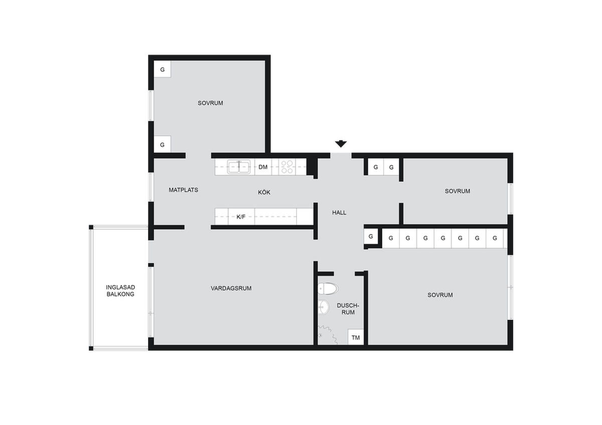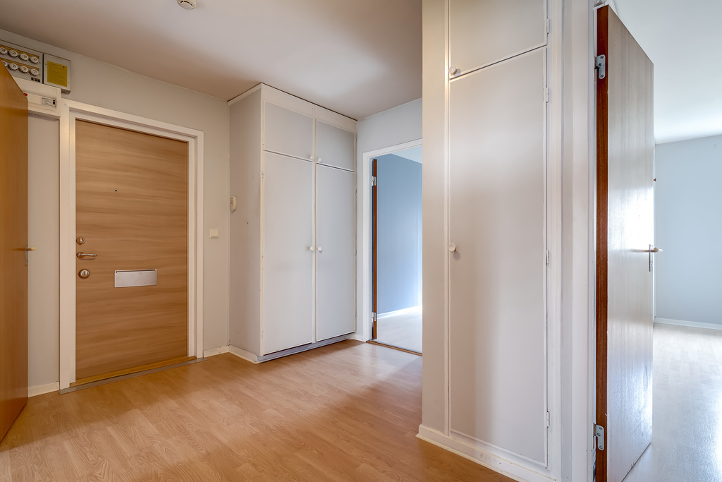 Lägenheten rymmer fyra rum och kök och passar lika bra för barnfamiljen som för paret som vill ha gott om utrymme för vänner, hobbies eller hemarbete. Planlösningen är både funktionell och flexibel med tre sovrum, ett ljust vardagsrum med utgång till en härlig inglasad balkong med kvällssol samt ett helkaklat duschrum med egen tvättmaskin.