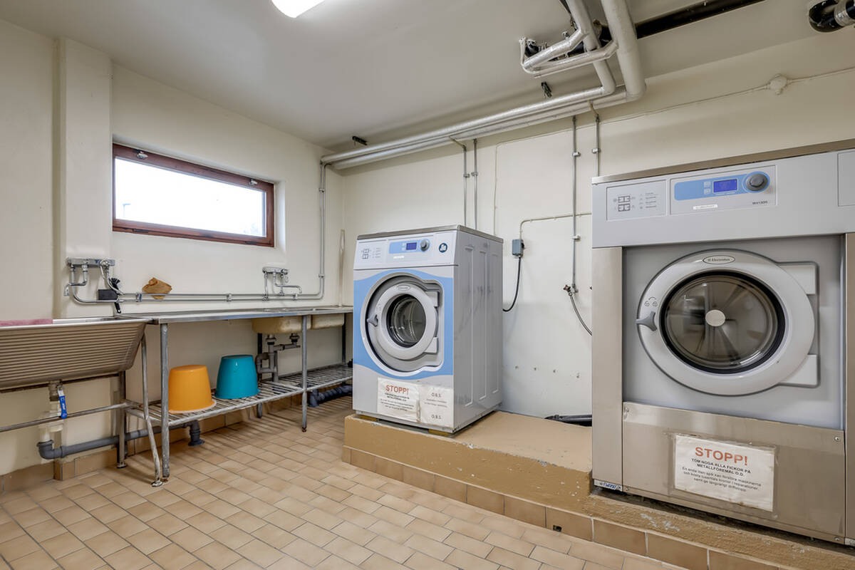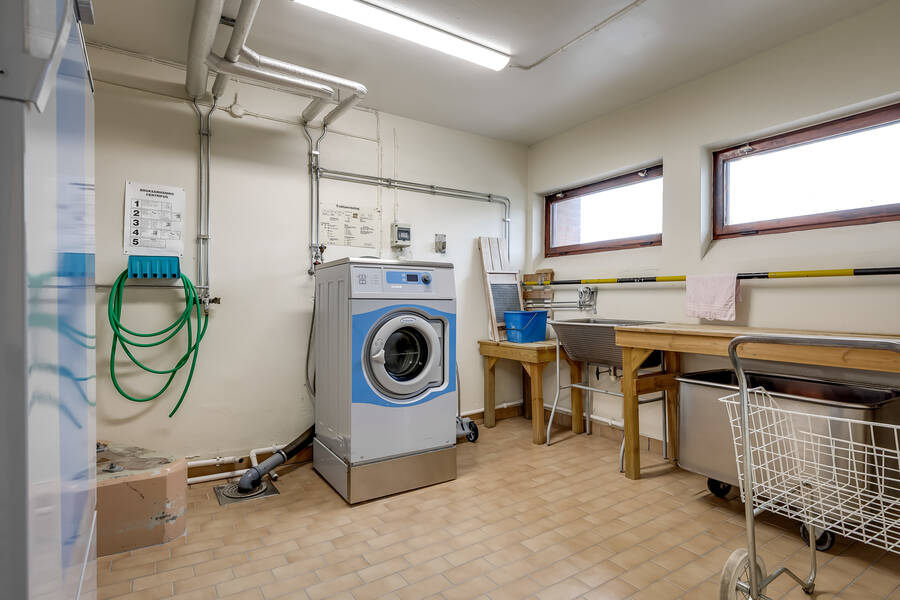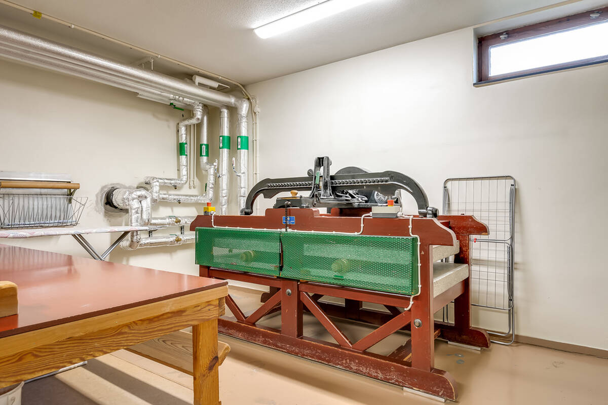 Gemensam tvättstuga finns i suterränplanet i huskroppen som har nummer 5. I samtliga byggnaders suterrängplan finns lägenhetsförråd samt möjlighet till förvaring av cyklar och barnvagnar.