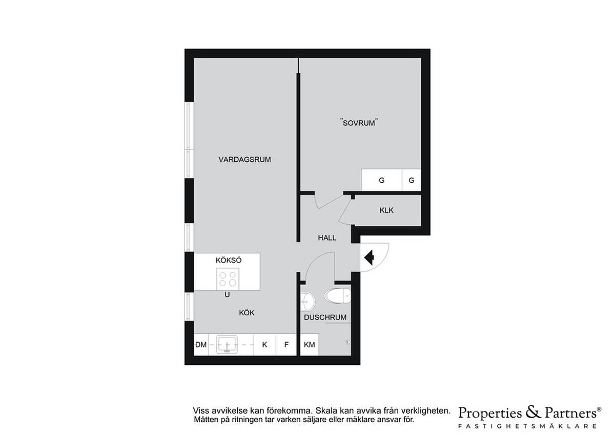 Lägenheten disponeras som 1.5 rum och kök men klassificeras i föreningens lägenhetsutdrag som 1 rum och kök. Denna area kan av olika skäl vara felaktig. Den köpare som anser arean vara av betydelse för köpet bör därför vidta en uppmätning före köpet.